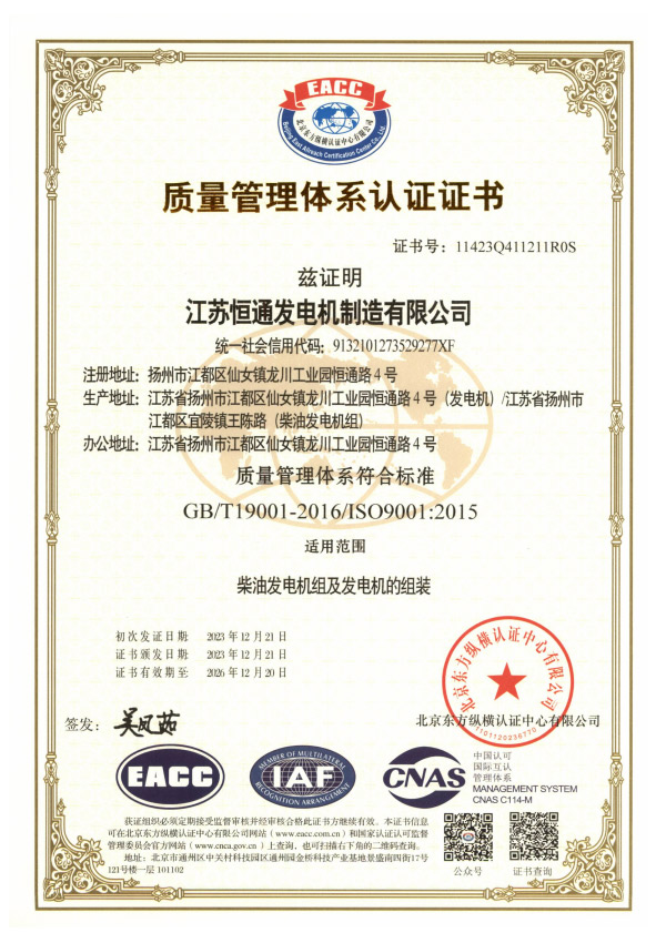 Honorary Qualification of Hengtong Generator